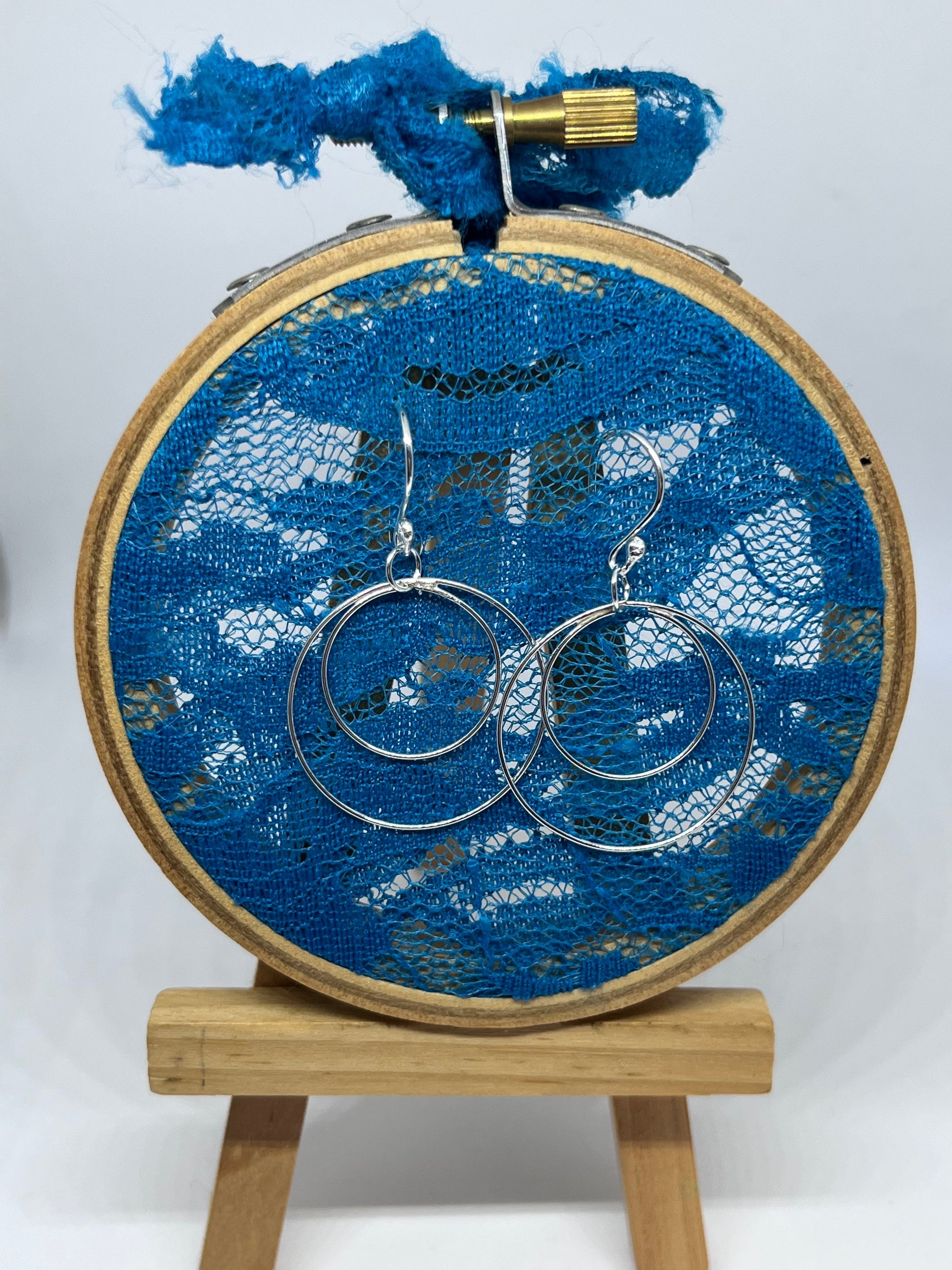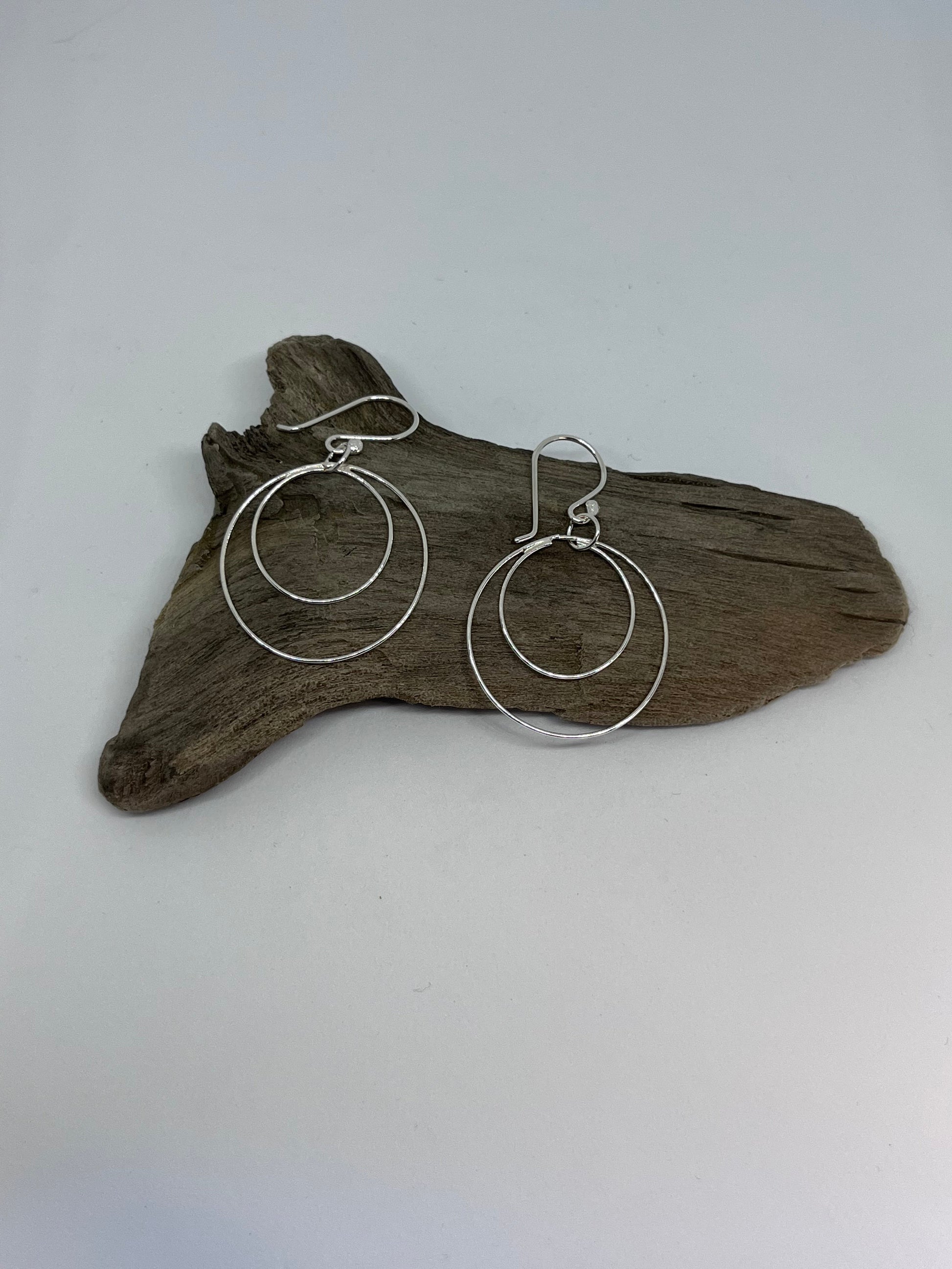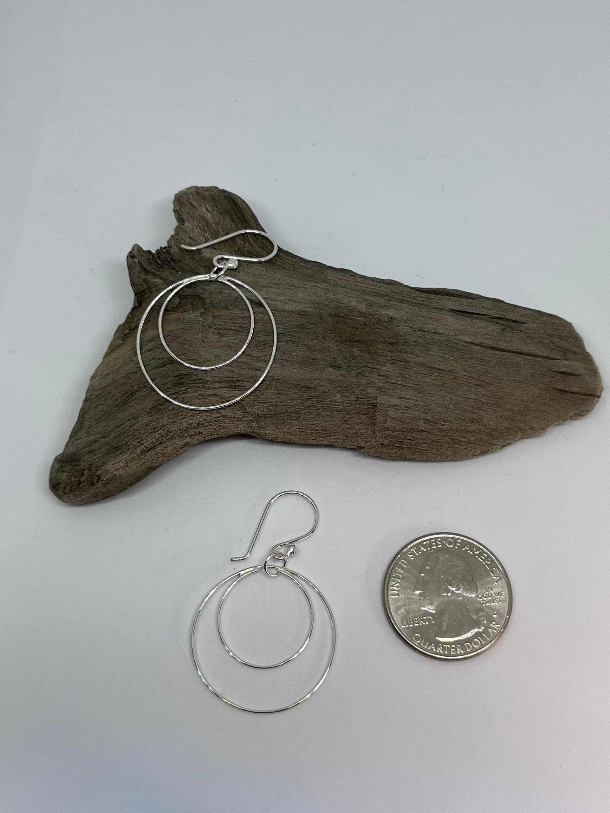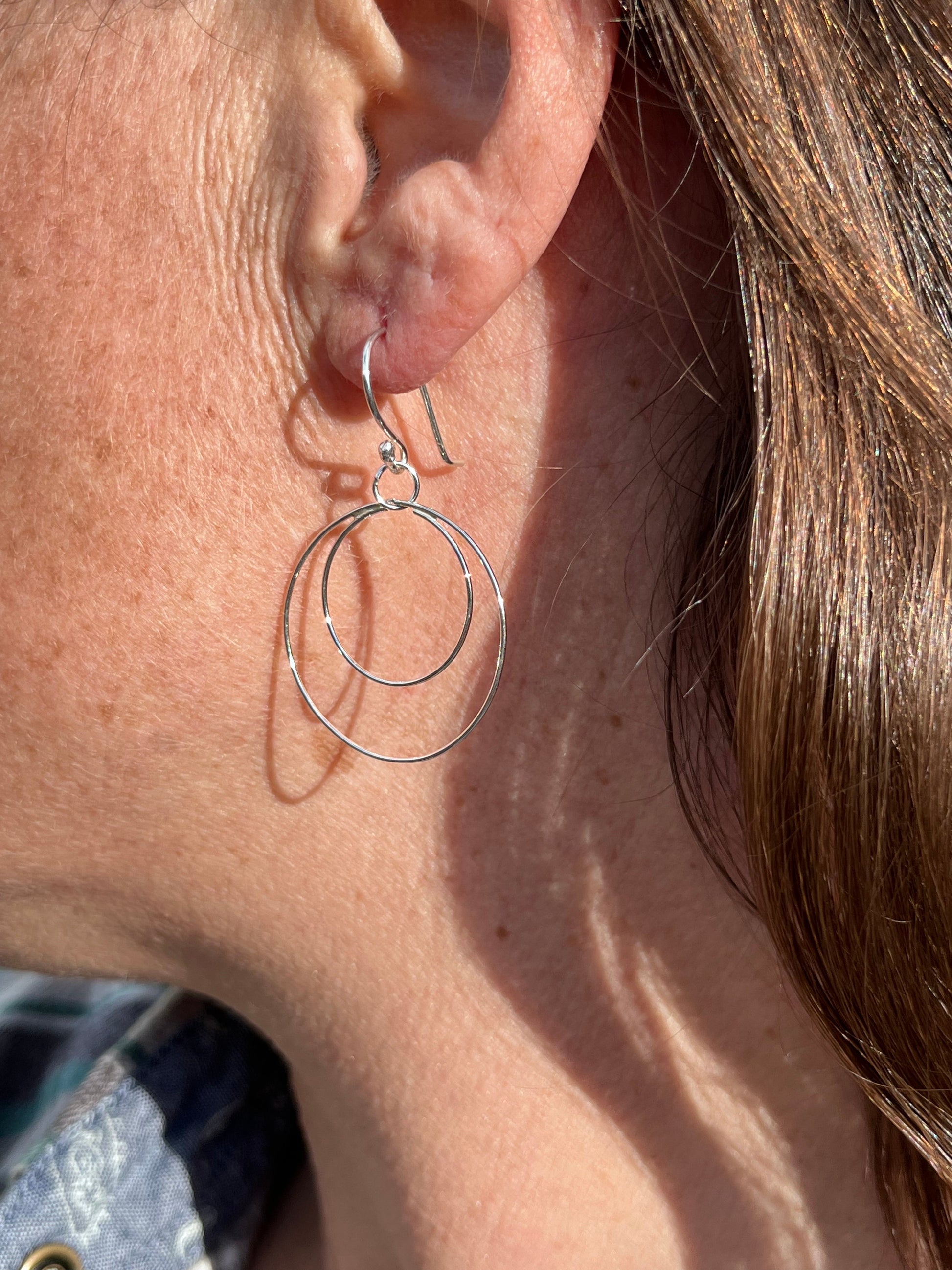 Hand made round sterling silver 22 gauge wire Eclipse Moon hoops. Paired with hand forged 20 gauge ear hooks and a soldered connector. These are light weight and full of fun movement.