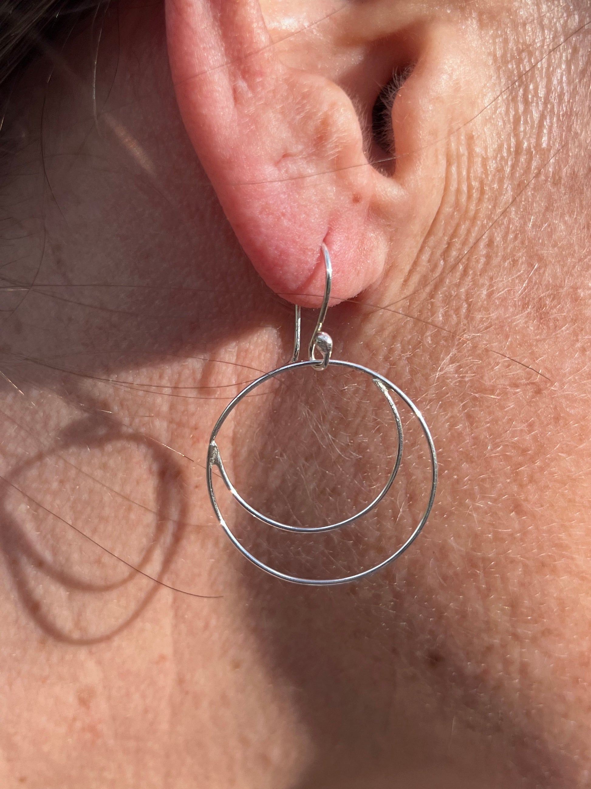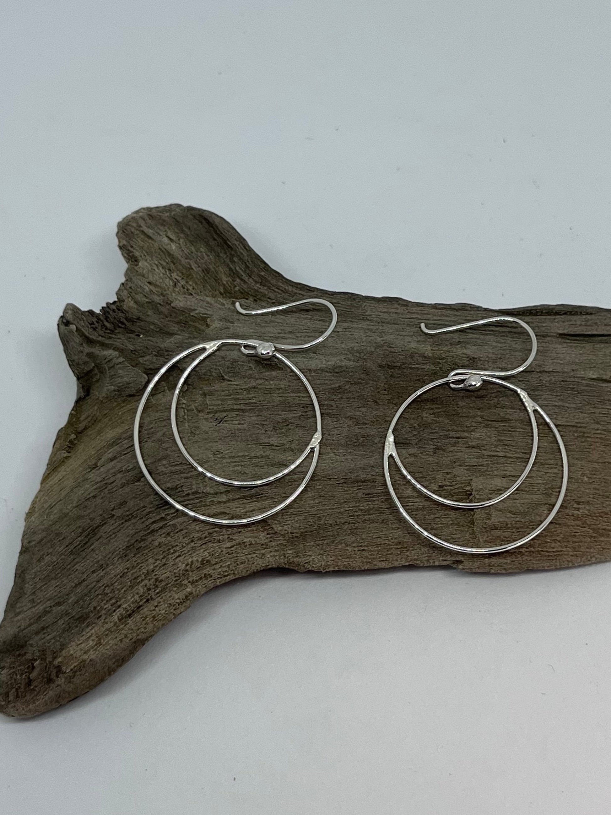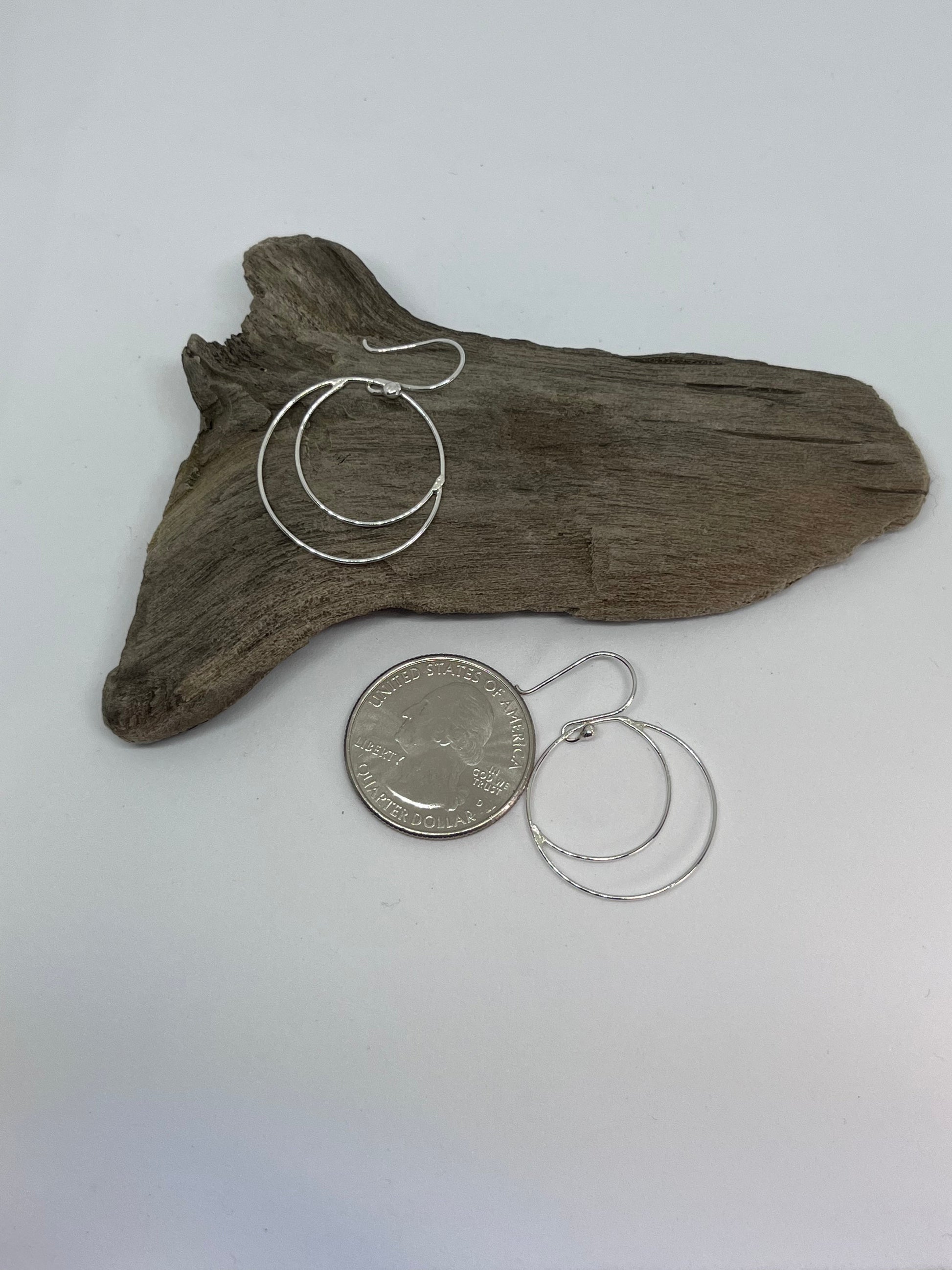 Hand made, round 22 gauge sterling silver Waning Crescent Moon hoops. Paired with hand forged 20 gauge ear hooks. These are light weight and have swaying movements from the ear hooks.
